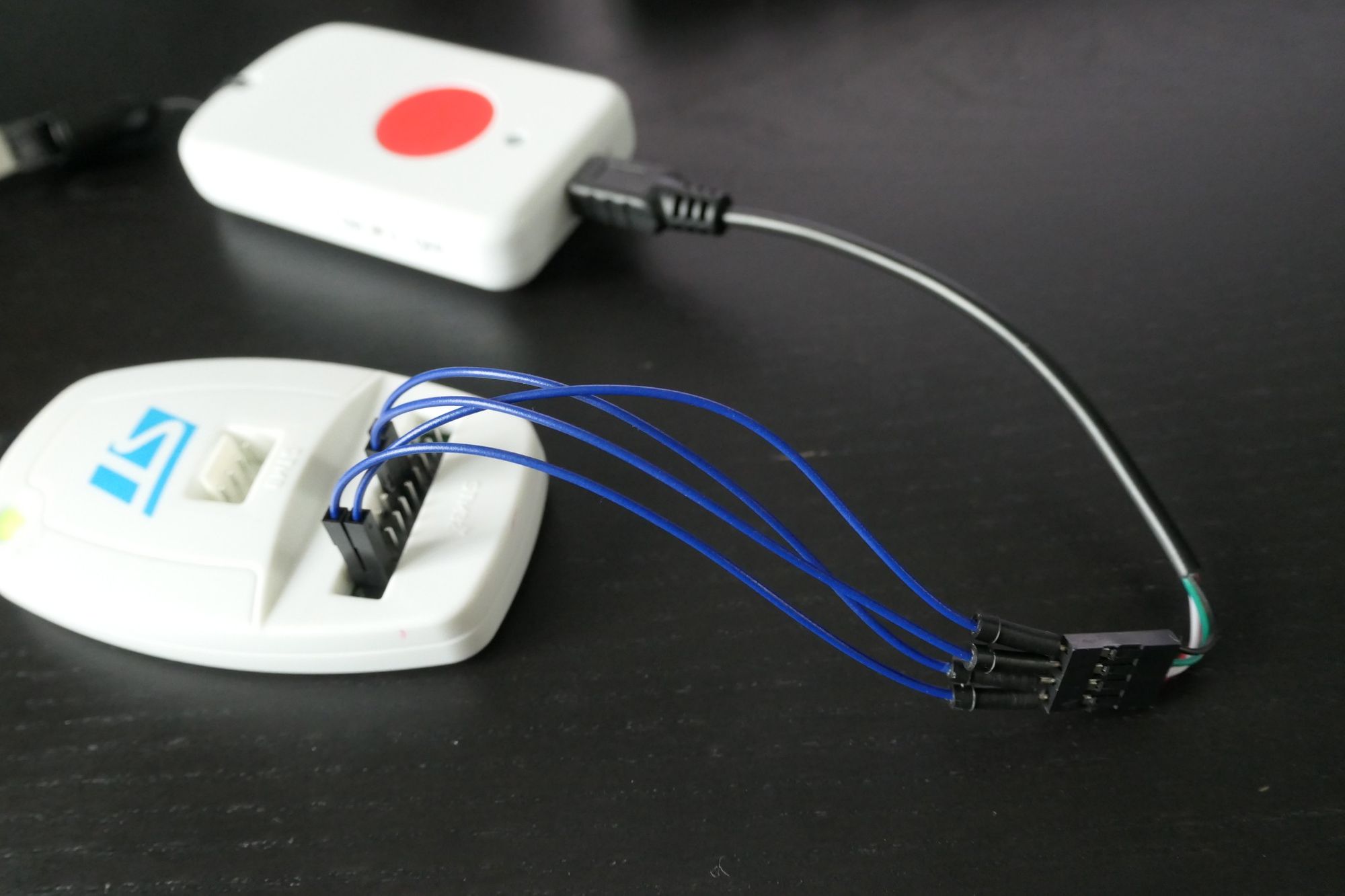 - Connect the LGT-92 to the ST-LINK/V2 and to your computer (see below how to exactly do that)