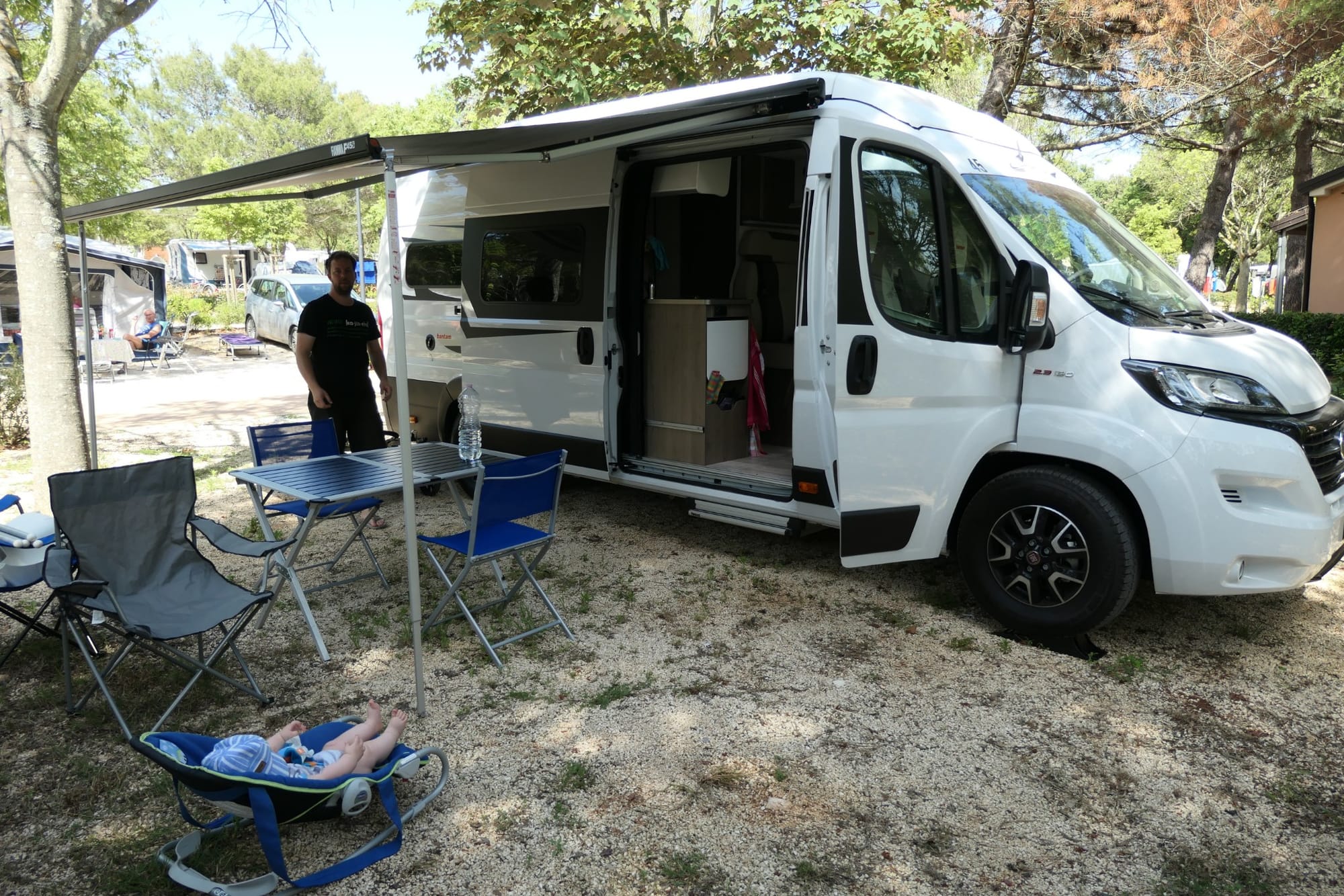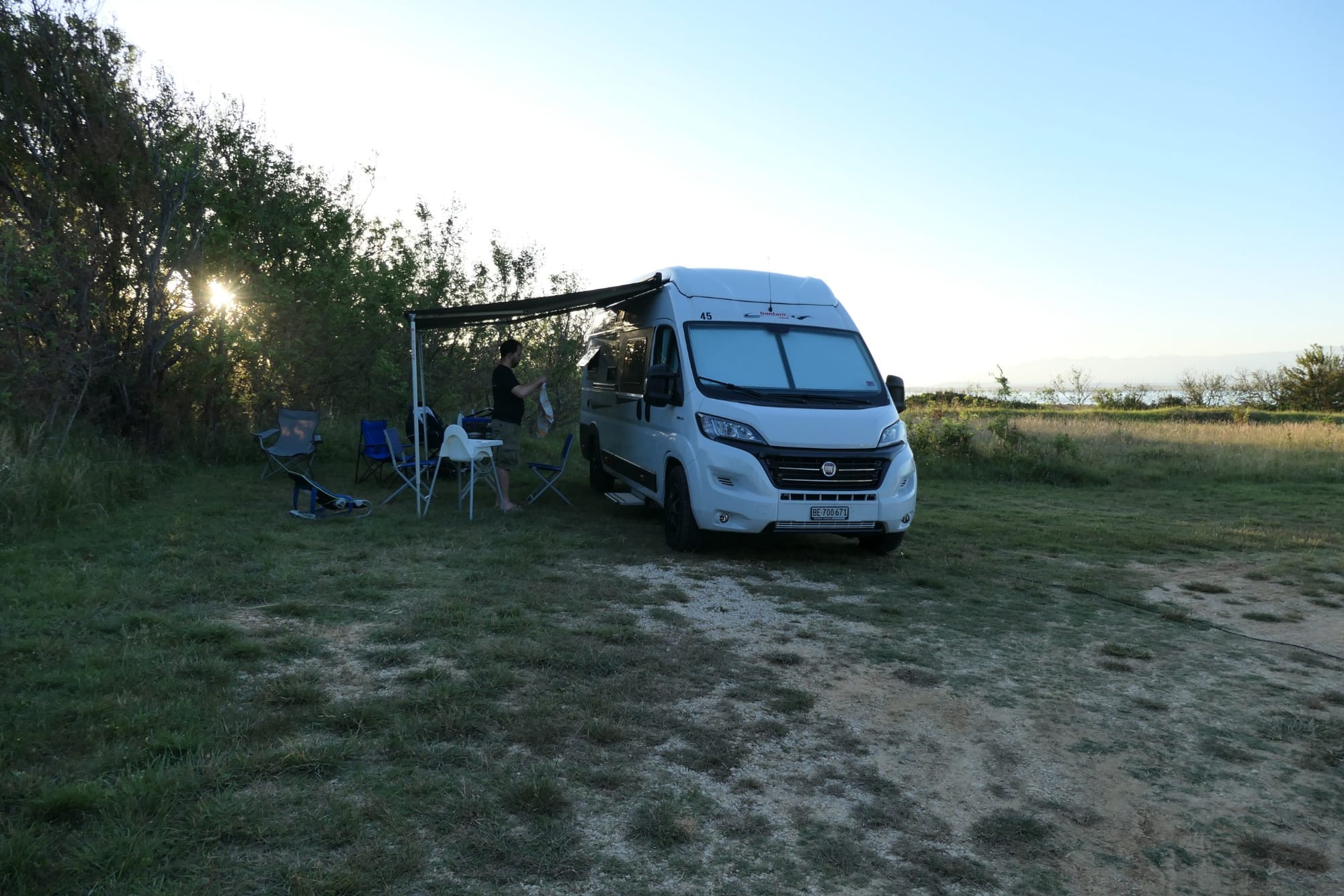 7.6.: Da wir unterwegs nach Kroatien noch Piran in Slowenien anschauen wollten, haben wir eine Nacht in Lucija auf dem Campingplatz Camp Lucija verbracht und sind mit dem öffentlichen Bus nach Piran gefahren. Piran ist autofrei, jedenfalls theoretisch, da Anwohner doch mit dem Auto durchfahren dürfen und es im Dorf einiges an Verkehr hatte. Der Campingplatz ist sosolala, relativ laut mit viel Verkehr und die WC Anlage ist sehr dürftig bis schlecht. Für Slowenien haben wir eine 1-Monats Autobahnvignette in Italien vor der Grenze gekauft, diese ist dann auch für den Rückweg gültig.