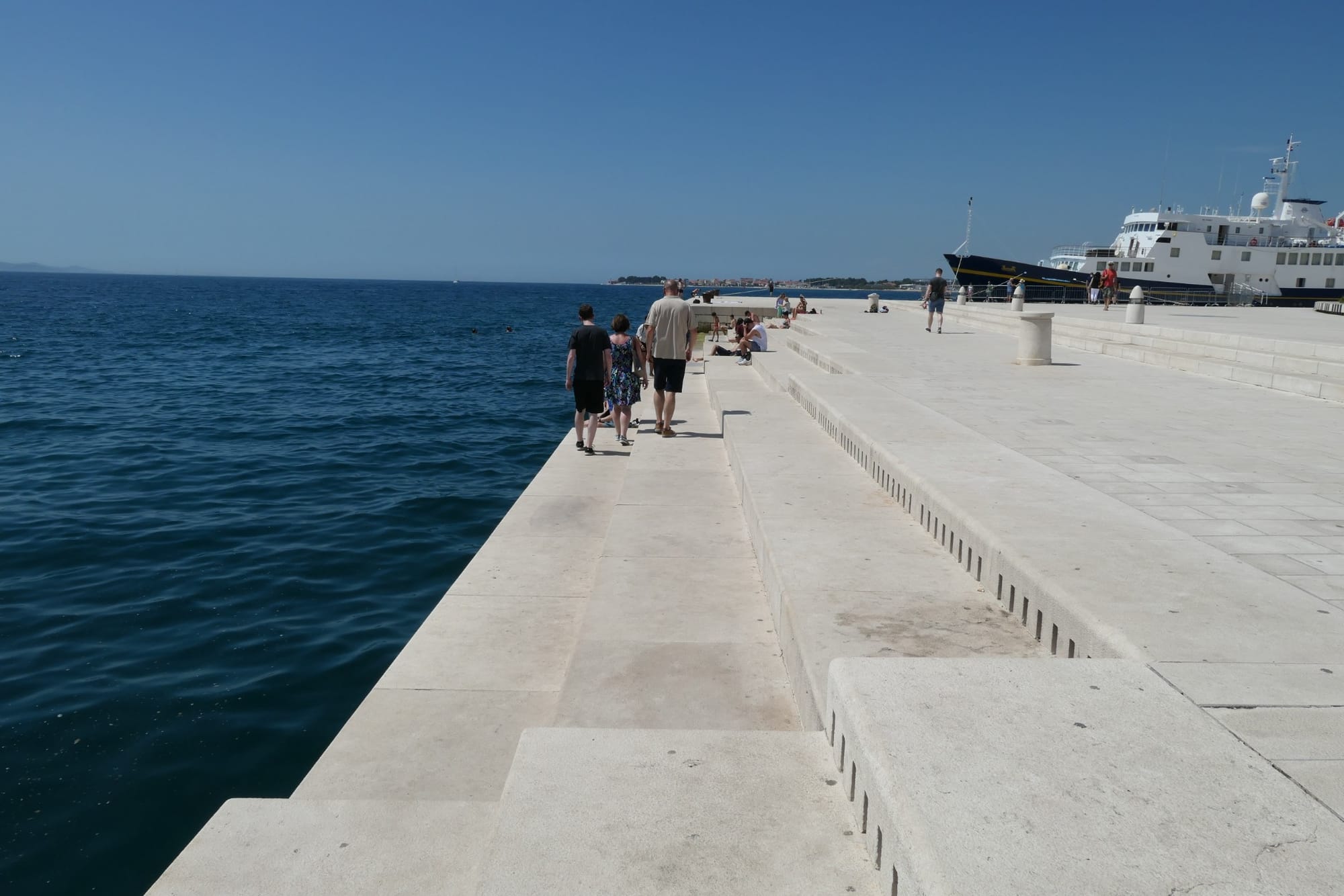13.6.: Besuch des Paklenica Nationalpark, in welchem einige Winnetou Filme gedreht wurden. Leider kennen wir die Filme nicht, daher kamen uns keine Stellen bekannt vor. Für Kletterer ist der Park ein Paradies, viele Leute waren in den steilen Wänden am klettern. Eine alte Militäranlage wurde zum Besucherzentrum ausgebaut, vom Bunker ist aber nichts mehr zu sehen, alles ist sehr modern ausgebaut. Nach dem Besuch fuhren wir nach Zadar, weiter entlang der tollen Küstenstrasse und über Land. In Zadar besichtigten wir die Altstadt, staunten über die Meeresorgel und genossen ein sehr feines Glace. Zur Übernachtung fuhren wir in Richtung Nin, da der einzige Campingplatz in Zadar neu gebaut wurde und noch nicht eröffnet ist. Zuerst wollten wir auf dem Zaton Holiday Resort übernachten, aber als wir den Besucherandrang sahen, machten wir rechtsumkehrt und übernachteten schlussendlich auf dem kleinen aber feinen Campingplatz Ninska Laguna. Gleich neben dem Campingplatz ist der Nin Laguna Beach, ein sehr schöner Sandstrand.