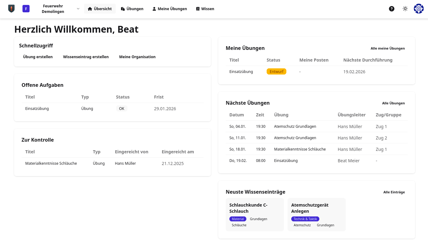 Seit ich vor etwa zehn Jahren in der Feuerwehr Urdorf zum Unteroffizier befördert wurde, plane ich Übungen. Und seit zehn Jahren heisst das: Word-Dokumente per E-Mail hin- und herschicken. Dateinamen wie Übungsvorbereitung_Absturzsicherung_Zug2_19_5_25_v2.docx sind dabei keine Seltenheit. Dazu kommen "Vorlagen" mit interaktiven Elementen, gesperrten Bereichen und unklarer Versionierung. Kurz: ein System, das niemandem Freude macht.