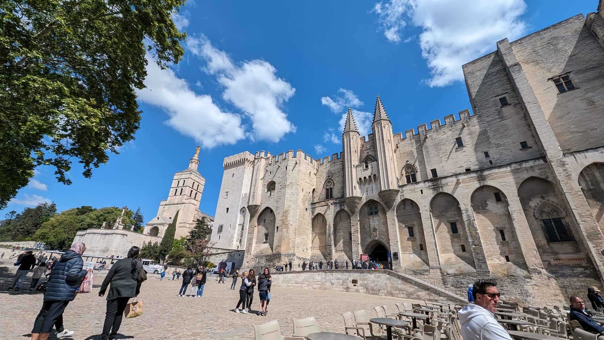 22.4. und 23.4. Fahrt nach Avignon und Besuch von Avignon. Unser Campingplatz liegt direkt vis-à-vis vom Pont d'Avignon. Mit einer kleinen Fähre kommen wir auf die andere Seite der Rhone. In Avignon haben wir eine Stadt-Rundfahrt mit dem Petit-Train gemacht und den Papstpalast besucht. Natürlich inkl. einiger Geocaches.