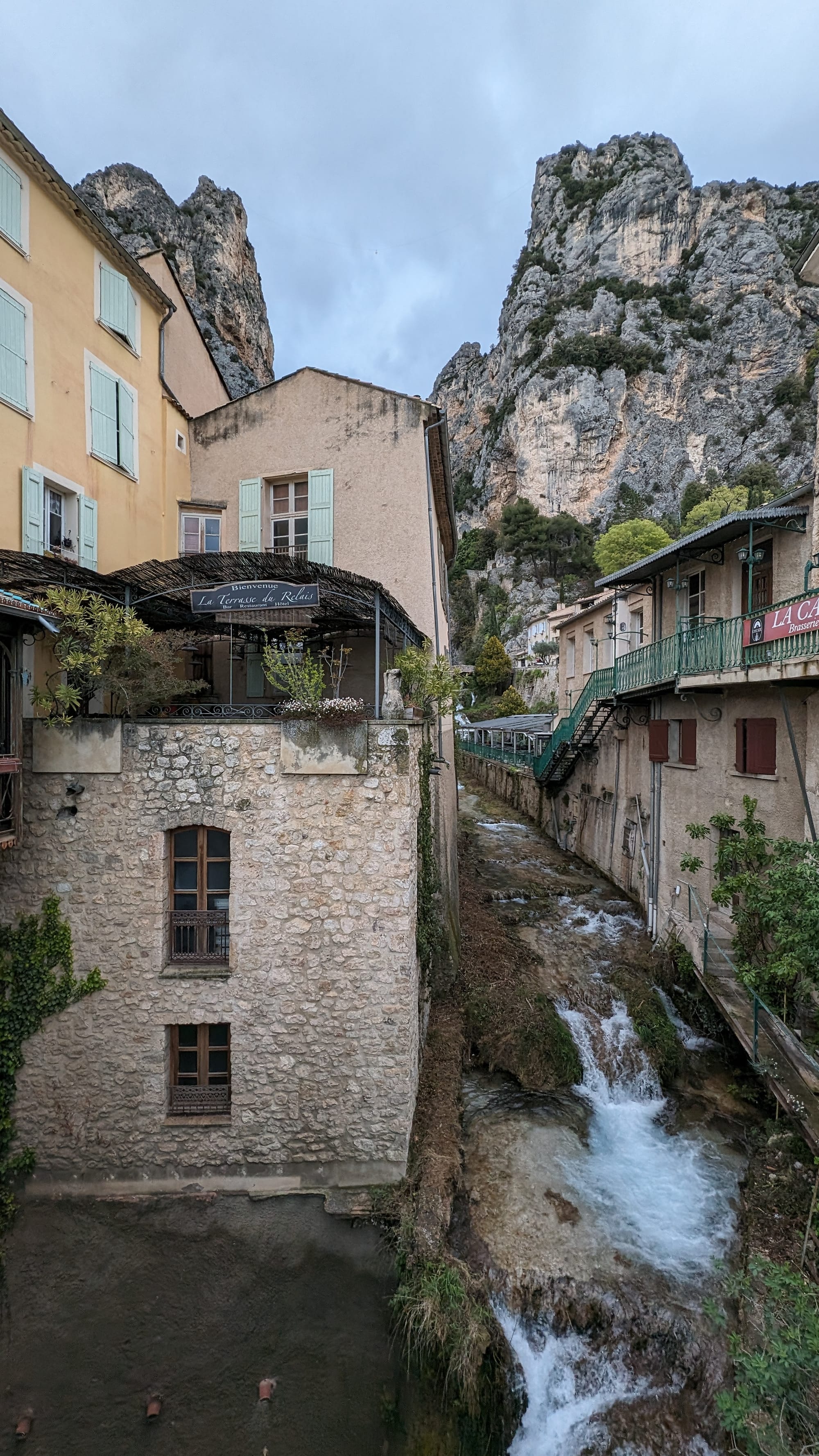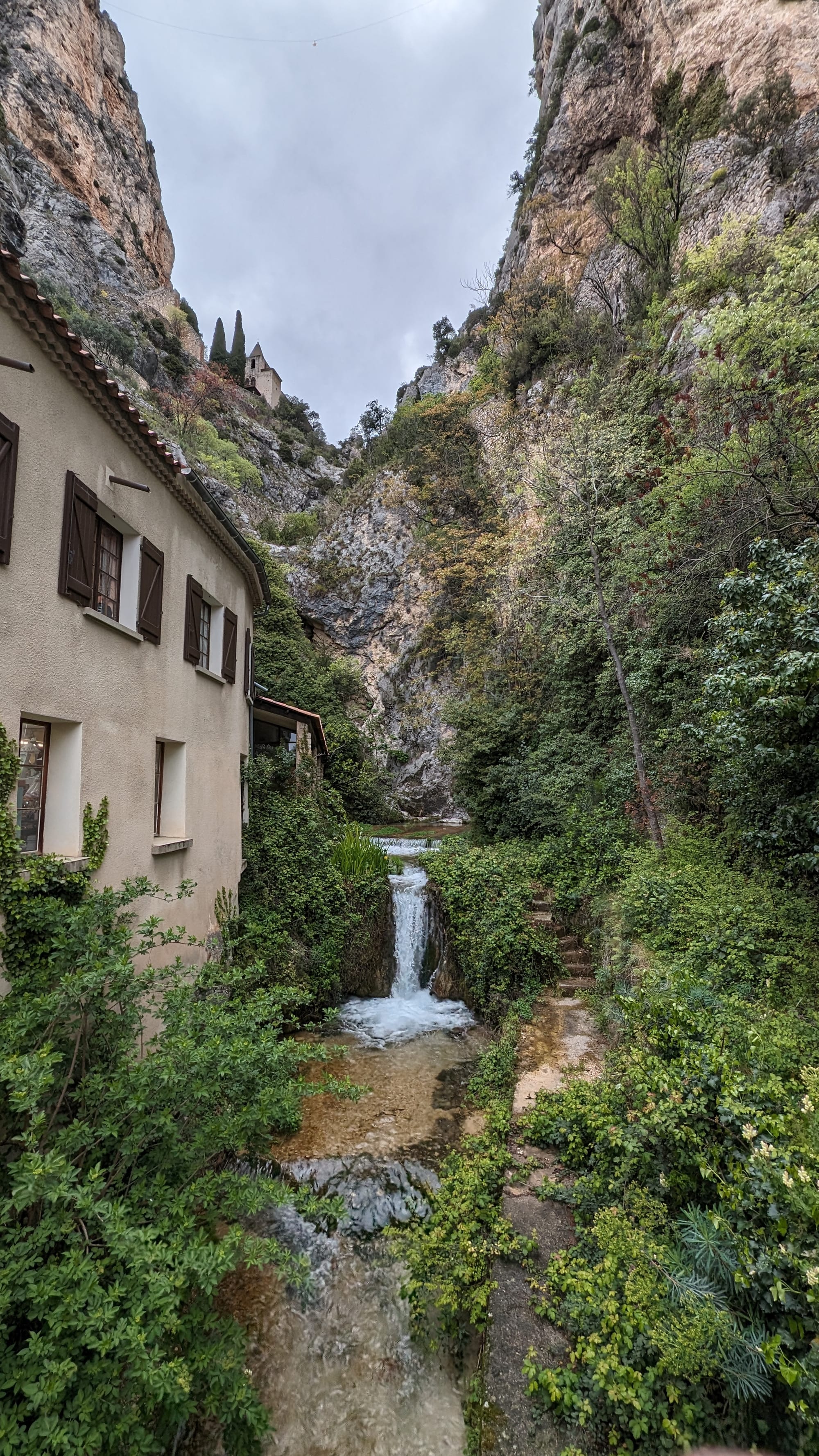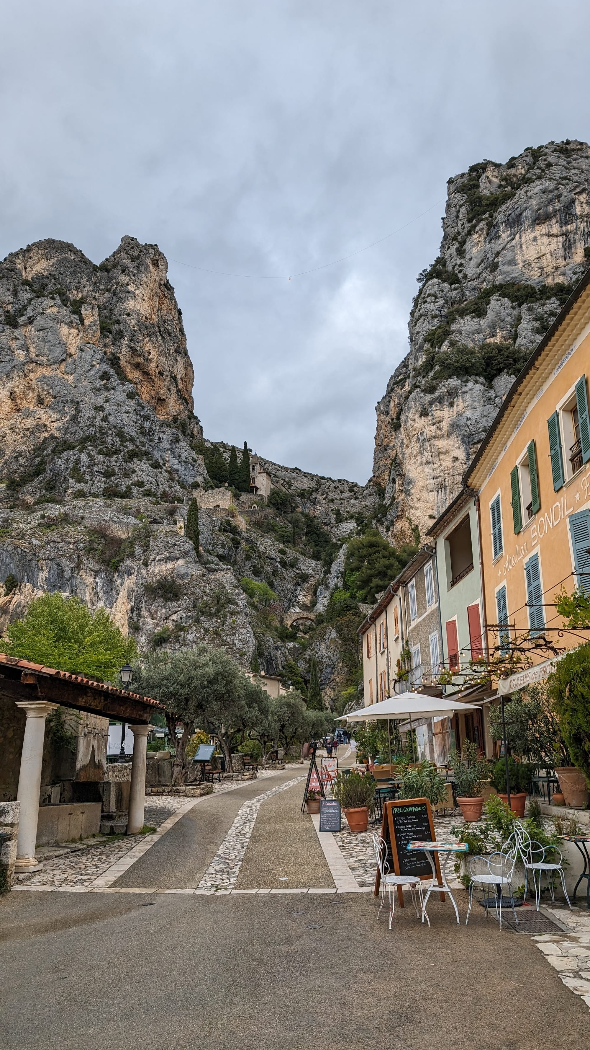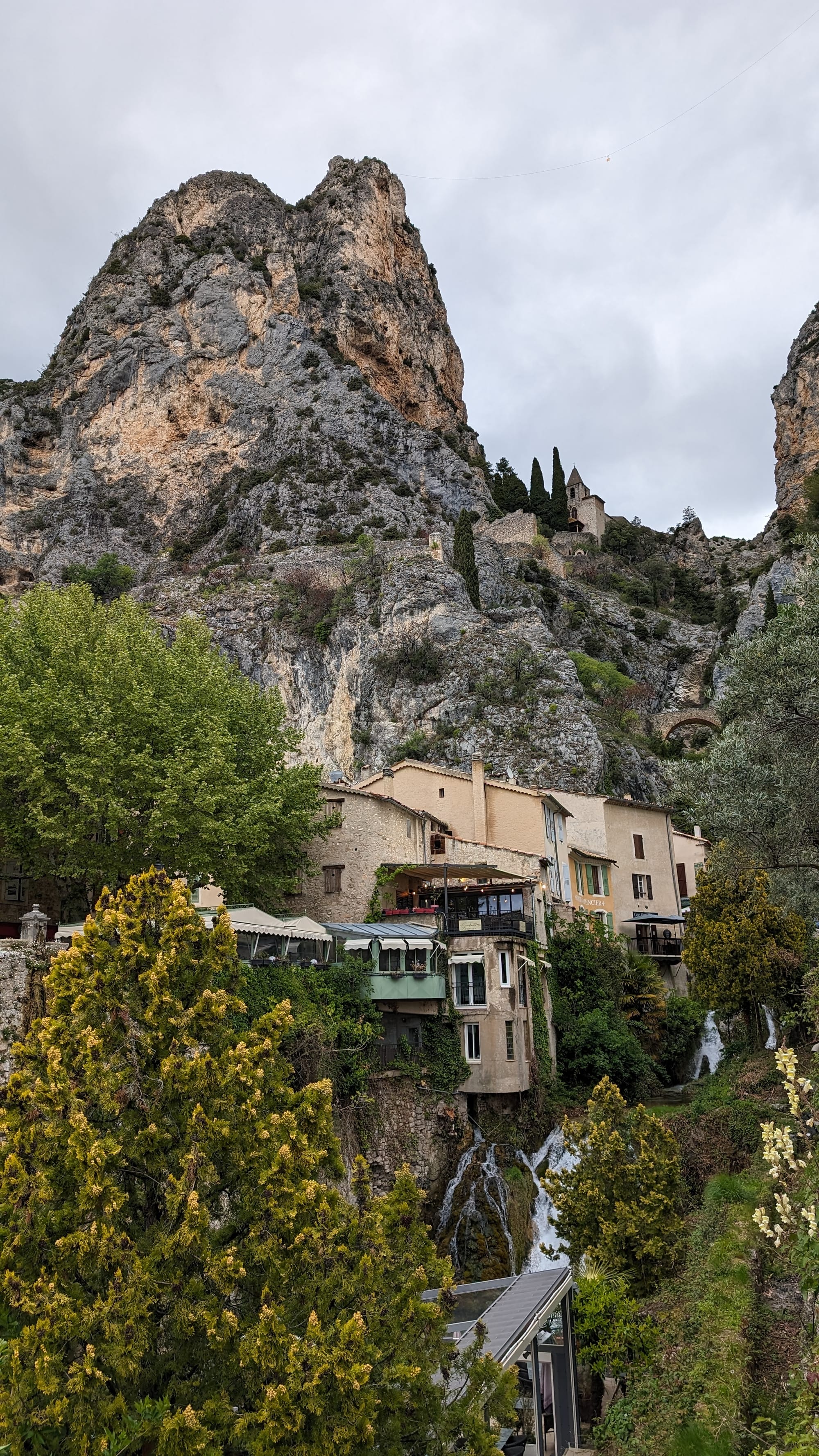 26.4. Fahrt bis Moustiers-Sainte-Marie in der Haute-Provence und Besichtigung des wunderschönen Dorfes. Zwischen den zwei grossen Felsen hängt ein Stern an einem Seil.