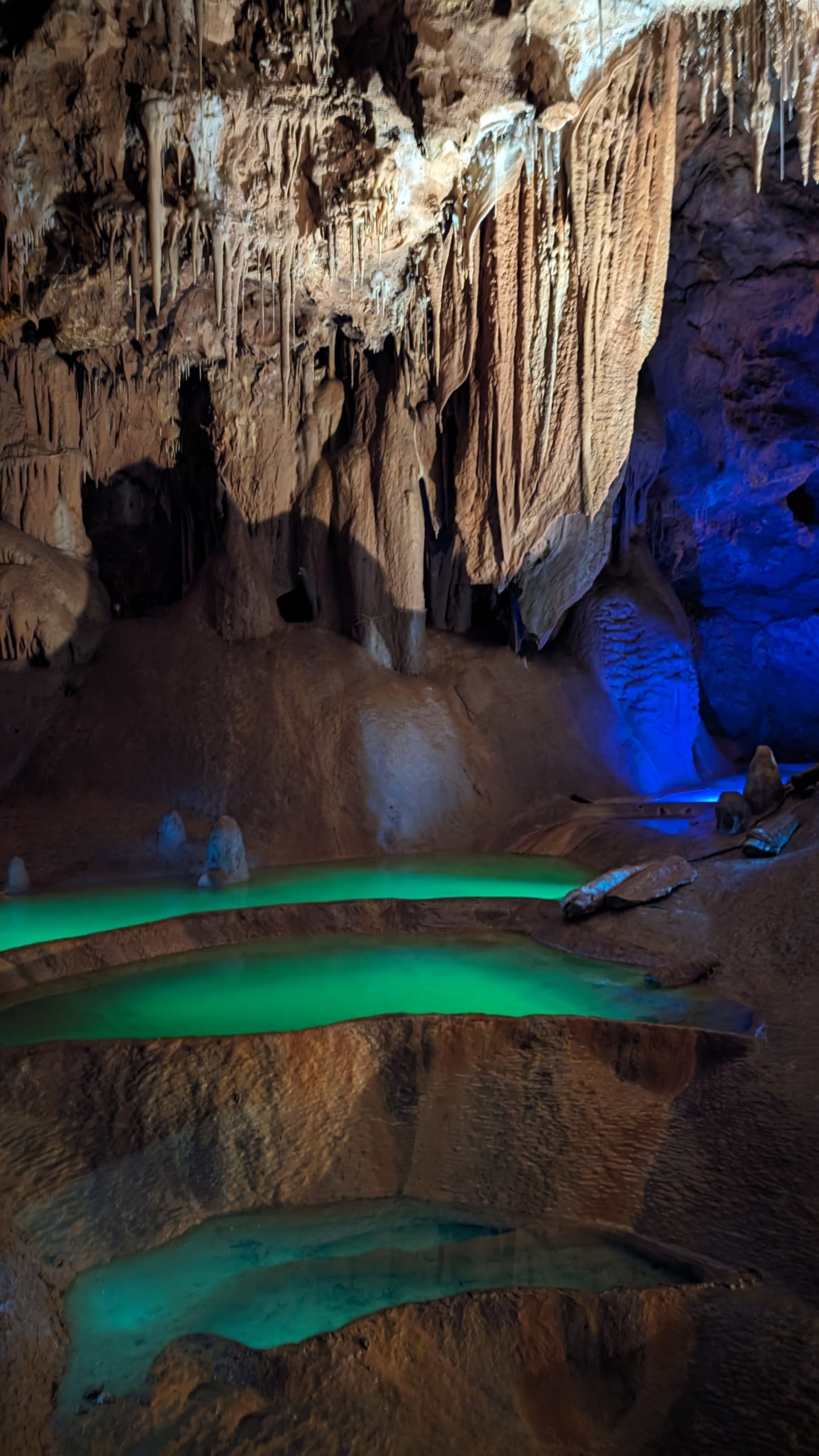 28.4. Fahrt nach Antibes mit Zwischenhalt bei der Höhle Le Souterroscope de la Grotte de Baume Obscure. In Antibes sind wir das erste Mal während dieser Reise am tosenden Meer.